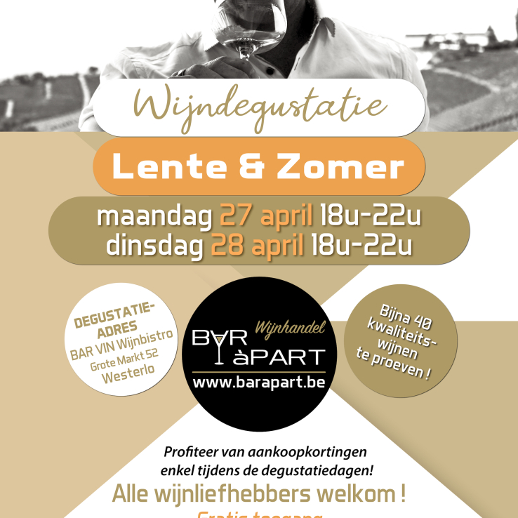 • Aarschotsesteenweg 173 • 2230 Herselt (BAR àPART Wijnhandel)• Grote Markt 52 • 2260 Westerlo (BAR VIN Wijnbistro)• Afhalingen webshop ook mogelijk via BAR VIN Wijnbistro • Grote Markt 52 • 2260 WesterloBE 0779.462.702